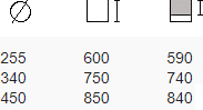• Ab 20 Stück je Sorte sind weitere Abmessungen erhältlich. Bitte erfragen sie Details.