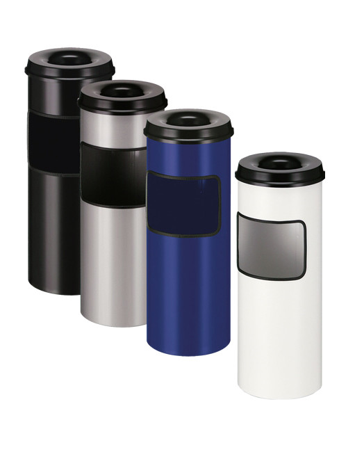 Runder Standascher und Abfallbehälter aus Stahlblech mit Ascherschale und Trichteraufsatz