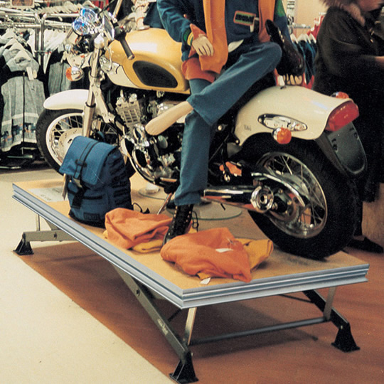 Staging platforms by sixnine-design are 1000x2000mm as standard and are available in several scissor type styles or with various plug-in legs. The rigid and TÜV approved construction has a high load capacity of 1500 kg and is therefore suitable for any type of event or presentation. Platform sizes made to customer specification are also possible because ‘Made in Germany’ allows high flexibility within the manufacturing process.