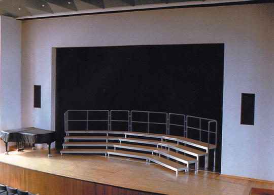 Choir platform with fixed height legs and safety railings